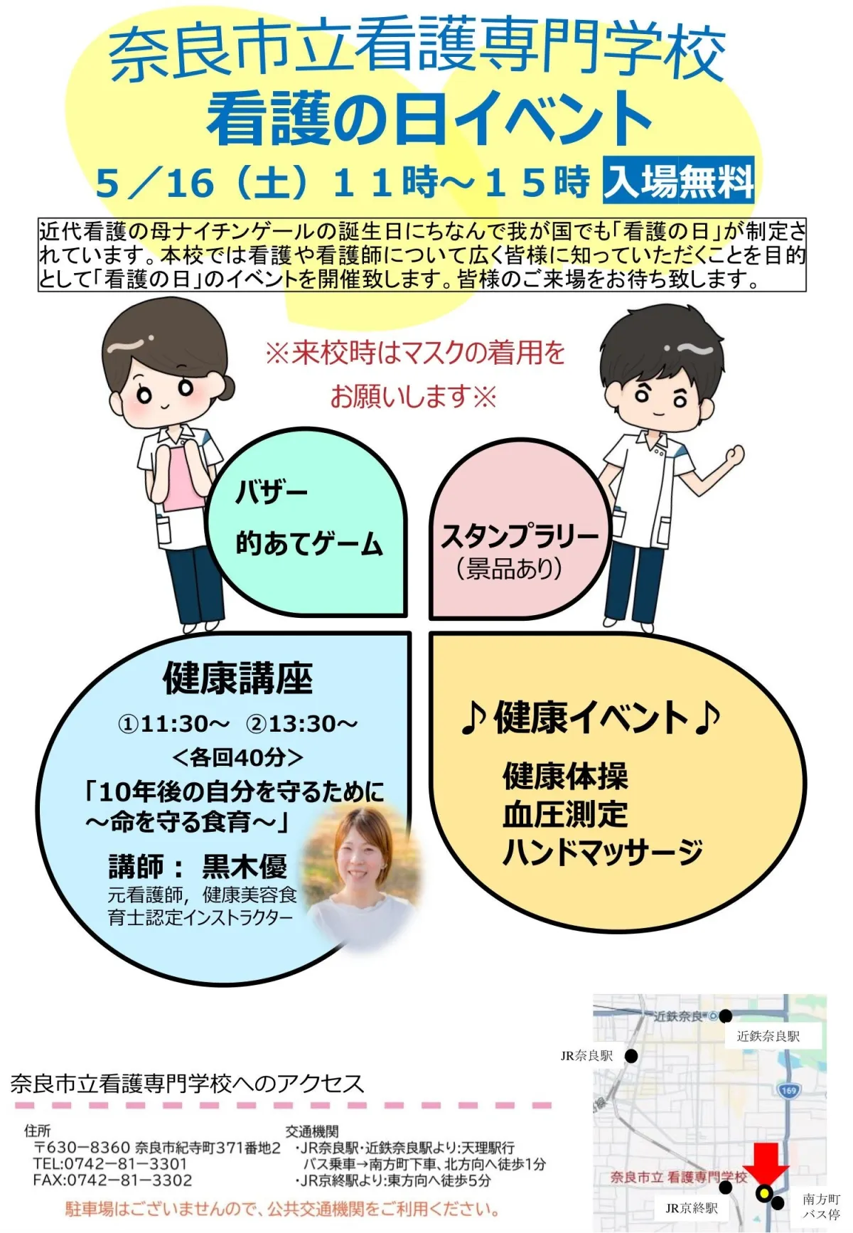 奈良市立看護専門学校では、「看護の日」にちなんだ体験型イベントを開催します。この日は、近代看護の礎を築いたナイチンゲールの誕生日にあたる特別な日です。学生たちの学びを地域社会と受験生に知ってもらう絶好の機会です。