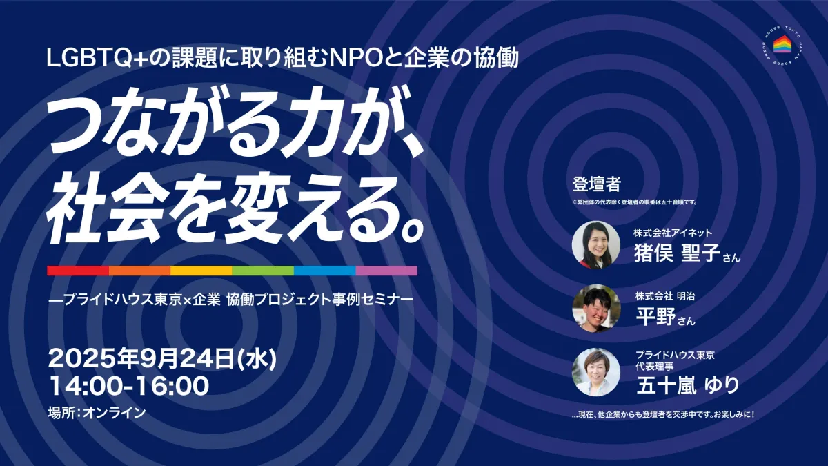 プライドハウス東京が主催する「プライドハウス東京×企業協働プロジェクト事例セミナー」が2025年9月24日に開催されます。このセミナーは、LGBTQ+の課題に取り組むNPOと企業が協力し、具体的な事例を通じて新たな施策の進化を模索することを目的としています。「つながる力が、社会を変える」というテーマのもと、多様なステークホルダーが集まり、これまでの取り組みを振り返りながら、今後の展望を話し合います。