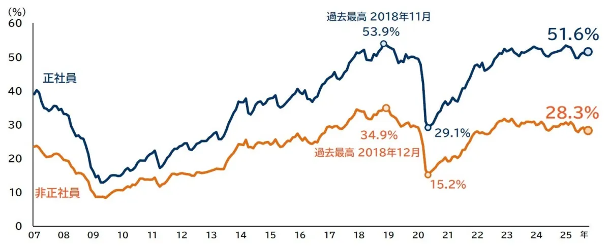 正社員不足51.6%、非正社員は改善傾向に - 2025年雇用調査結果