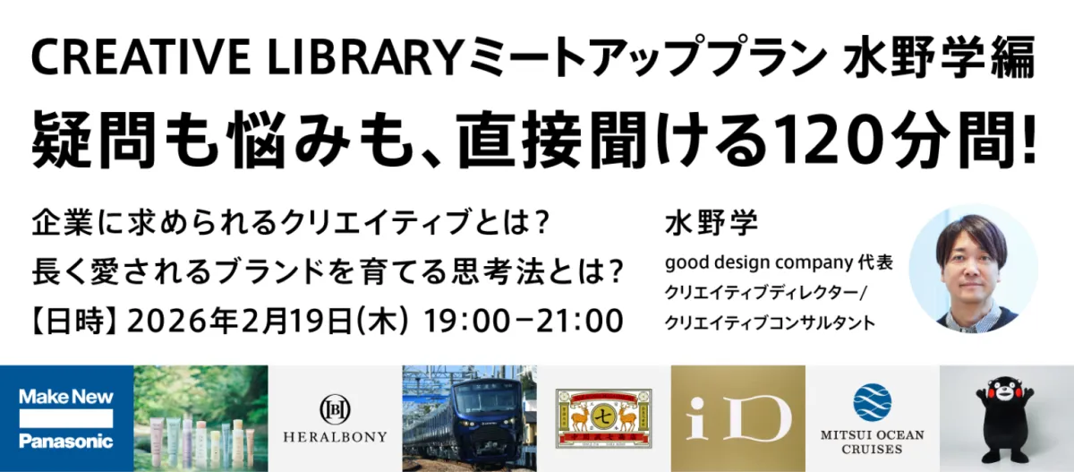 2026年2月19日(木)に、株式会社宣伝会議が主催する「ブレーンクリエイティブライブラリー水野学編ミートアップ」が開催されます。この講座では、著名なクリエイティブディレクターである水野学氏と直接対話するチャンスを提供し、参加者がリアルな悩みや疑問を相談できる特別な時間となっています。