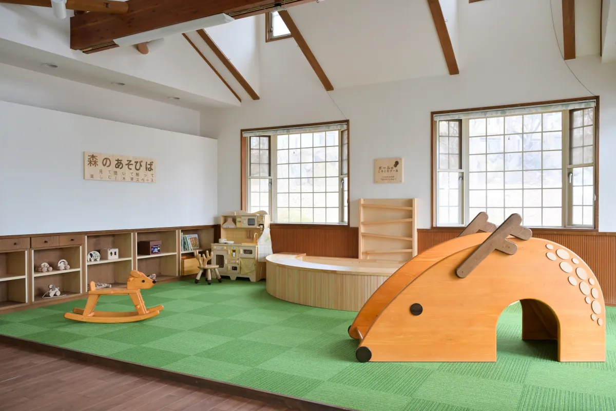 「森のあそびば」は、木製の遊具や玩具がふんだんに配置された空間で、お子さんに木のぬくもりを体感させることを目的としています。施設には国産のひのきから作られた遊具が揃っており、ひのきの香りやその美しい木目が子どもたちの好奇心を刺激します。これにより、木育体験を通じて「木とふれあい、木に学び、木と生きる」という理念が実現されます。