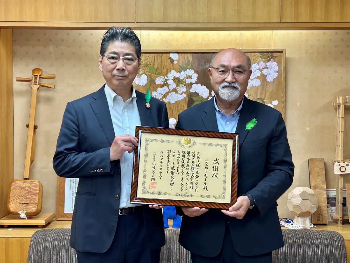 株式会社ラキールは、2025年7月28日、農林水産省・林野庁長官から環境保全を支援する活動について感謝状を授与されました。これは、「緑の募金」を通じた取り組みが評価された結果です。