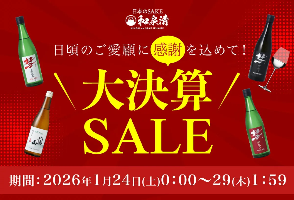 2026年1月24日(土)0:00から、日本のSAKE和泉清 楽天市場店が待望の「大決算セール」を開催します。このセールは、日頃のご愛顧に感謝を込めて行われ、最大50%OFFの特価商品や、ポイント最大10倍還元が用意されているため、家飲みや贈り物に最適な商品をお得に購入できるチャンスです。