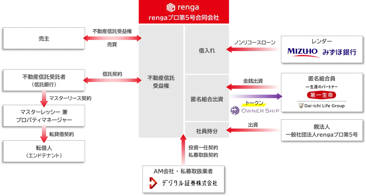 デジタル証券株式会社(以下、DS社)とその子会社オーナーシップ株式会社(以下、OS社)は、2025年8月29日付で日本初のプロ向け不動産STOファンド、「rengaプロ第5号合同会社」を設立しその組成に成功しました。