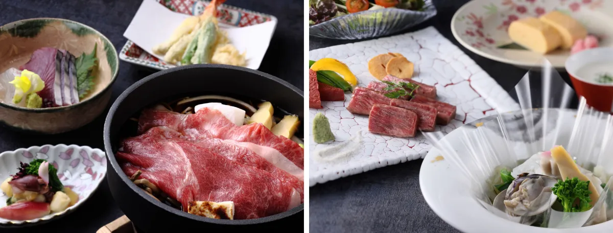 「日本料理 おおみ」では、滋賀県のブランド牛“近江牛”と春の山菜を贅沢に合わせた『近江牛と山菜すきやきランチ』が提供され、料金は6,000円です。このランチでは、近江牛の特有な脂の旨味と柔らかな肉質が、旬の薇や筍など山菜と相まって、まさに春の味覚を楽しむことができます。また、蛍烏賊と小柱のぬた和え、初鰹と鯛のお造り、小鮎と海老の天麩羅など、季節感たっぷりの一品が揃い、特別なひとときを演出します。ランチは11:30から15:00までの間に提供されます。