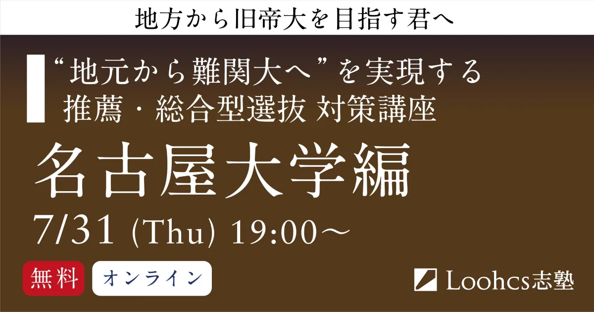 入試の競争が激化する中、地方在住の高校生にとって名古屋大学を目指すことは課題が多いですが、ルークス志塾が提供する新たなチャンスがあります。2024年7月31日に無料オンライン講座「名古屋大学 推薦・総合型選抜 対策講座」が開催されることが決定しました。