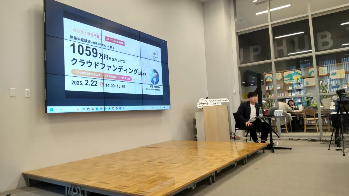 東京創業ステーションTAMAにて、株式会社LEAGUEが開催した無料セミナーが話題を呼んでいます。テーマは「無在庫×資金不要で物販未経験者が発売初月から1059万円を売り上げるクラウドファンディングの始め方」。セミナーは中心となる内容を盛り込み、成功に導く具体的な事例が紹介されました。
