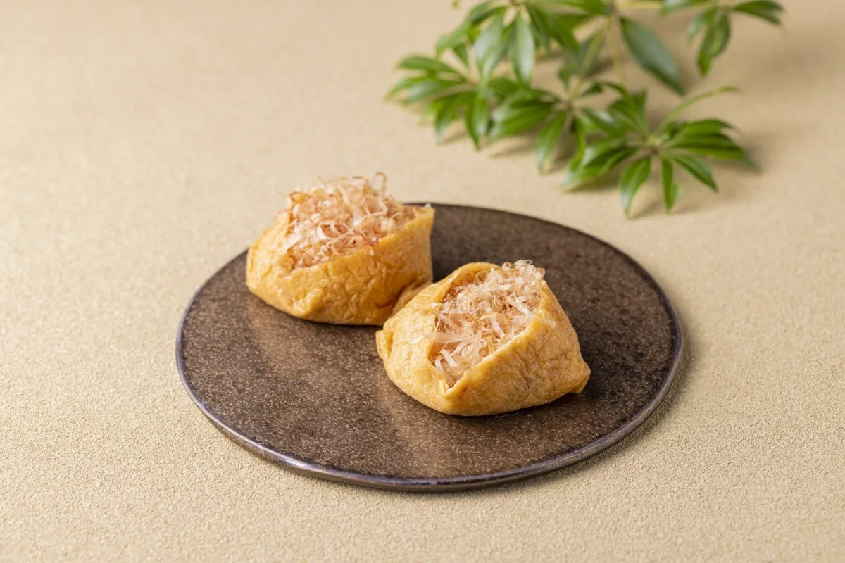 「いなり餅」は、しなやかな餅に糸カツオをまぶし、甘辛に炊き上げたいなり揚げで包んだ一品。この料理は、餅と出汁の旨味が絶妙に絡み合い、どちらを食べても満足感が得られます。生姜醤油を添えて楽しむと、また違った味わいへのアプローチができます。スイーツと軽食の間にある独特の存在感が魅力的です。