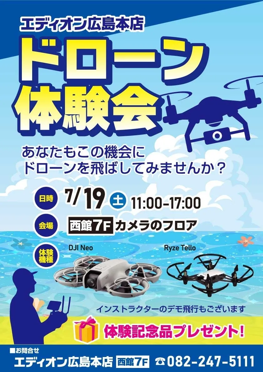 2023年7月19日、エディオン広島本店において、DJIによる新製品体験イベントが開催されます。この日は、DJI社の革新技術を搭載した軽量ドローン「DJI Neo」と、最新のアクションカメラやジンバルカメラの数々が、一般のお客様に直接体験していただける貴重な機会です。