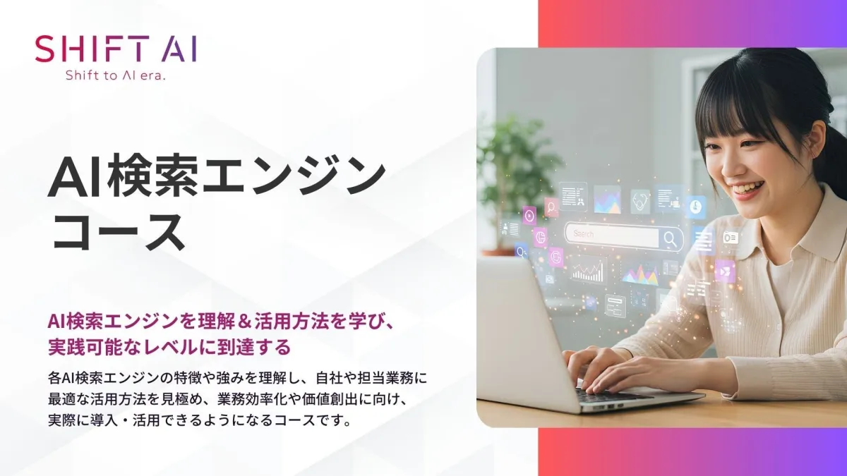 近年のビジネス環境では、情報検索やデータ活用の高度化が求められています。そこで株式会社SHIFT AIは、新たに法人向けの生成AIリスキリングサービス『AI検索エンジンコース』を2025年4月8日から提供することを発表しました。このプログラムは、AI検索エンジンを理解し、実際の業務へどのように活用するかを学ぶことを目的としています。