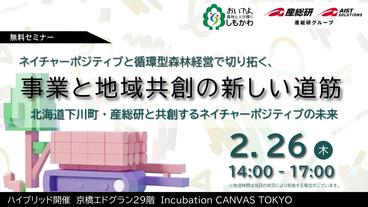 このイベントでは、下川町と産総研の取り組みを紹介するほか、企業がどのようにネイチャーポジティブをビジネス戦略に組み込むかについてのヒントを提供します。参加者は、ショートピッチやクロストークを通じて具体的な連携の可能性を探ることができ、共創による新たな価値創出に向けた方策を模索できます。