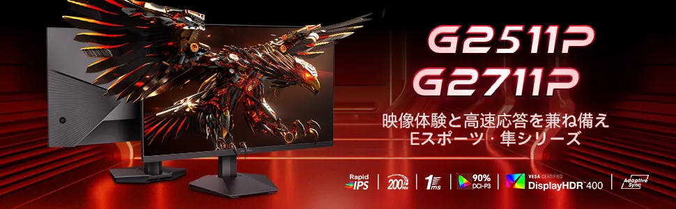 新しい隼シリーズでは、次の5つの特長が際立ちます。まず、高性能なFHD IPSパネルを採用しており、200Hzのリフレッシュレートと1ms GTG応答速度により、迅速な画像転送が実現されています。これにより、特にEスポーツでの競技においてアドバンテージを与えてくれることでしょう。さらに、90%のCI-P3色域とDisplayHDR 400技術の組み合わせによって、明暗を鮮やかに映し出し、まるでその場にいるかのような臨場感を提供しています。