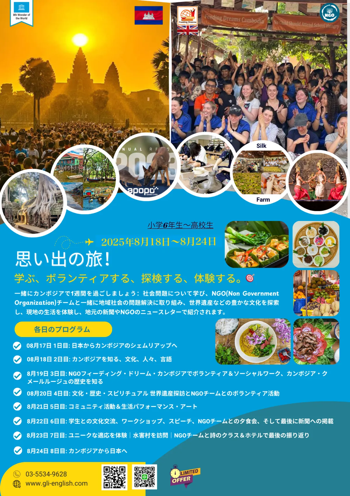 GLIは、単なる語学教育に留まらず、国際的な視野を持った次世代のリーダーを育成するための教育機関です。夏のこの機会に、カンボジアでの学びを通じて、「生きた学び」を体験しませんか。興味がある方は、ぜひ詳細情報をチェックし、参加を検討してみてください。