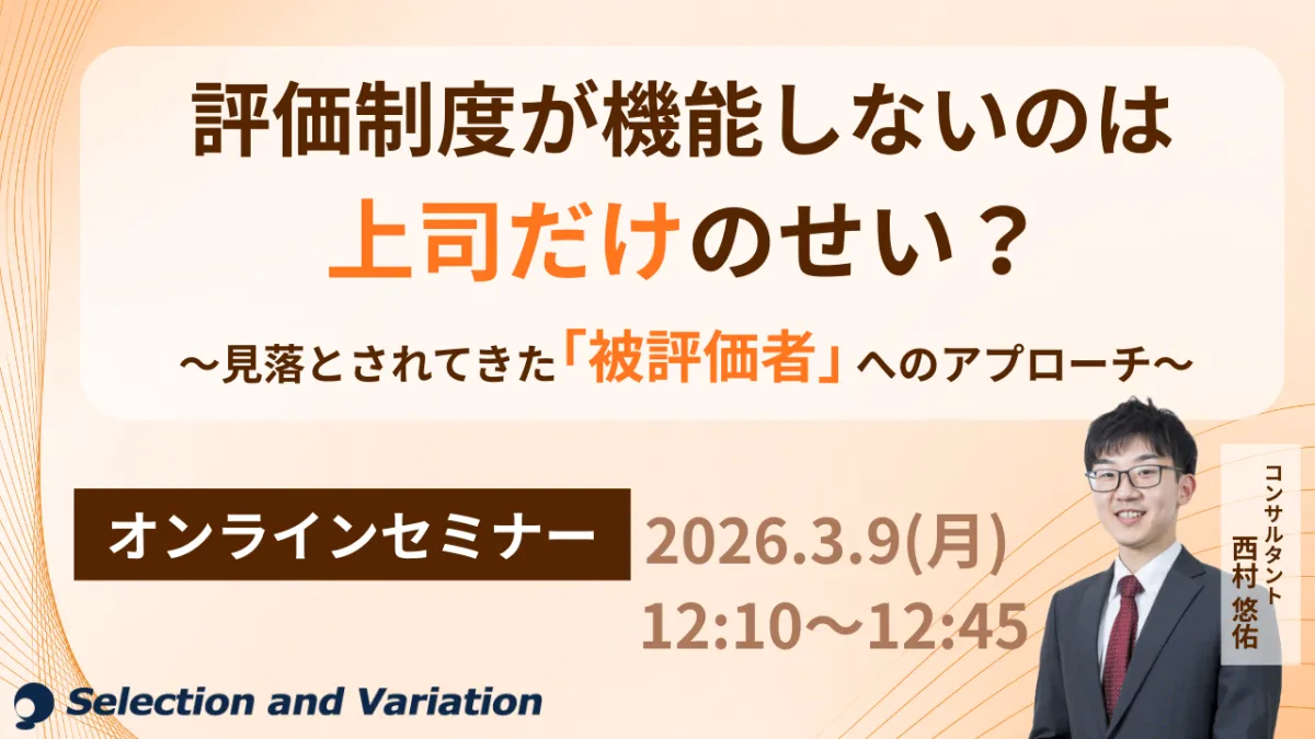 評価制度が機能しない理由として、上司だけが問題視されることが多いが、実際には「被評価者」の視点も見逃されていることが少なくない。組織内で評価制度が機能しない原因を、被評価者へのアプローチの欠如に求め、これを改善するための方法を学ぶことができるセミナーが、2026年3月9日(月)12:10から開催される。