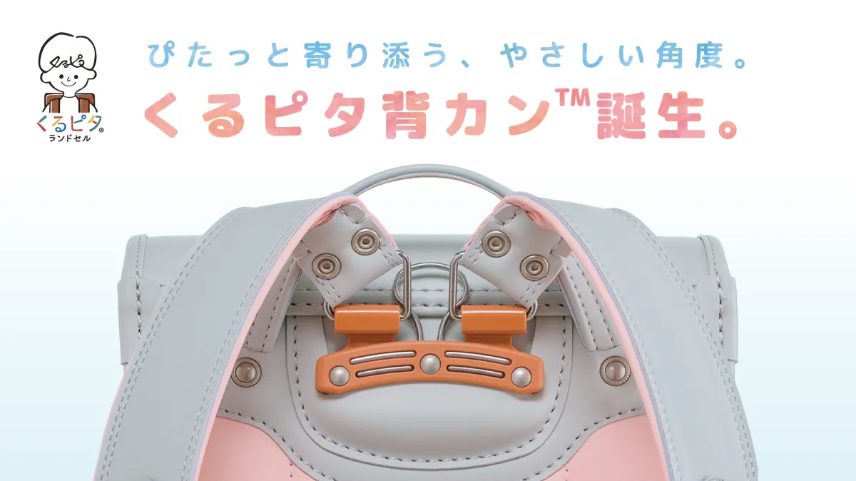 この「くるピタ背カン」とは、ランドセル本体と肩ベルトを繋ぐ重要な部品で、背負い心地やフィット感を大きく左右します。背カンの工夫によって、肩ベルトの立ち上がり方や可動域が変わり、お子さまの体に適切に密着することで、安定感を高めることができます。この重要なパーツは、見えない部分ではありますが、お子さまの6年間にわたる通学生活を支えるために欠かせない存在です。