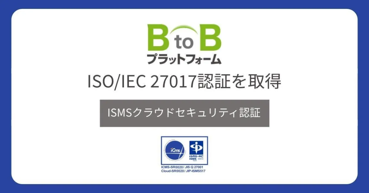 - - 認証範囲: 「BtoBプラットフォーム」に関する商談、受発注、請求書などの提供