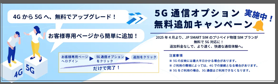 無料で5G回線にアップグレード!JP SMART SIMの新しいサービス
