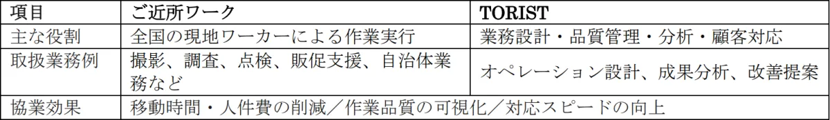 ご近所ワーク株式会社と株式会社TORISTは、2025年11月から地域現場業務の効率化と品質向上を目指す新たな協業を開始します。この取り組みは、少子高齢化や人材不足に直面する企業や自治体に対し、地域住民の力を活用して現地業務を支援することを目的としています。