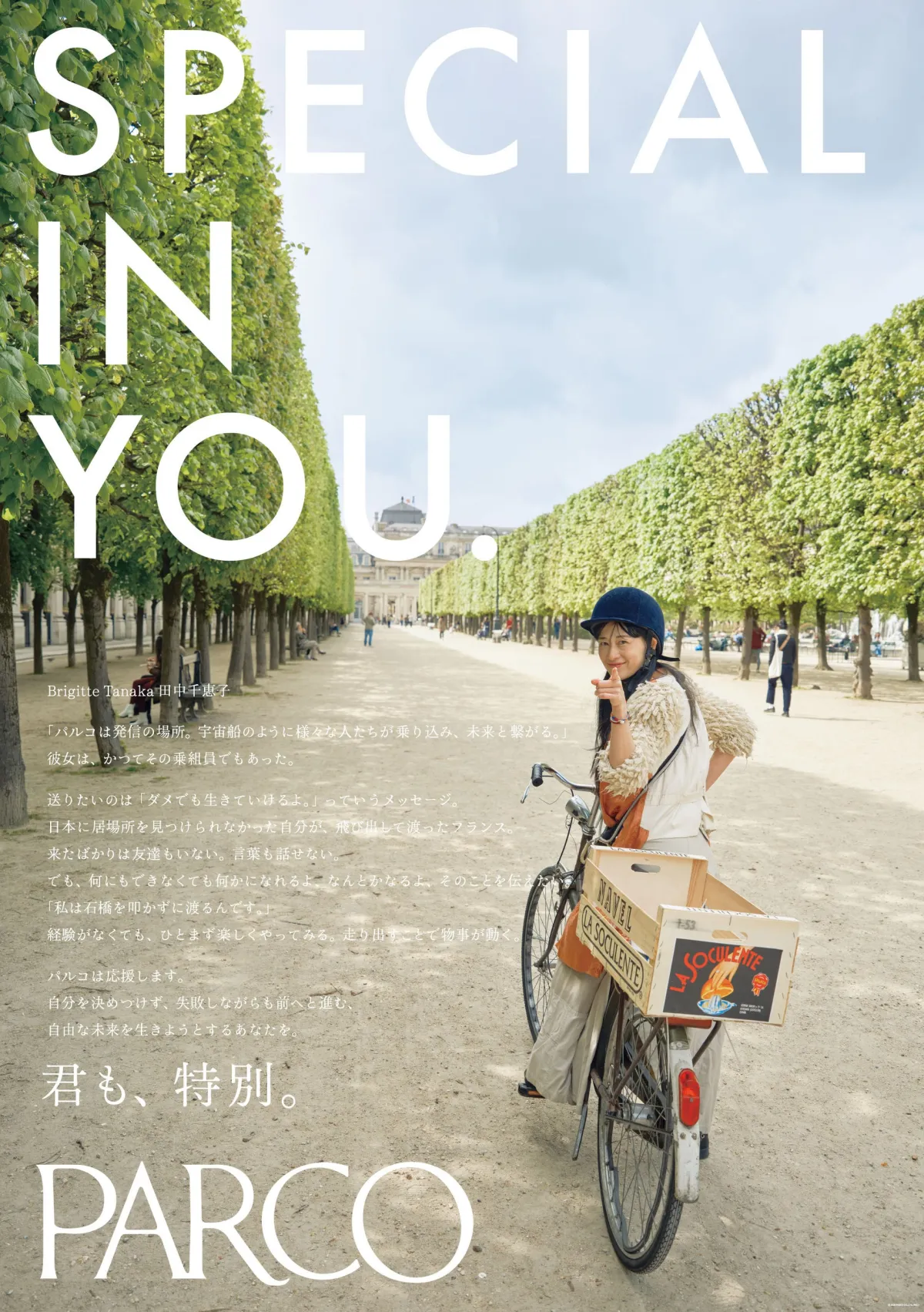 株式会社パルコは、今夏から冬にかけて展開するコーポレートメッセージ「SPECIAL IN YOU.」の第24弾広告に、パリで注目を集めるブティック「Brigitte Tanaka」のディレクター兼デザイナー、田中千恵子氏を起用しました。田中氏は日本だけでなく、世界中でそのファッションセンスと独自のスタイルを確立しており、彼女の生き方と思想を深く掘り下げていきます。