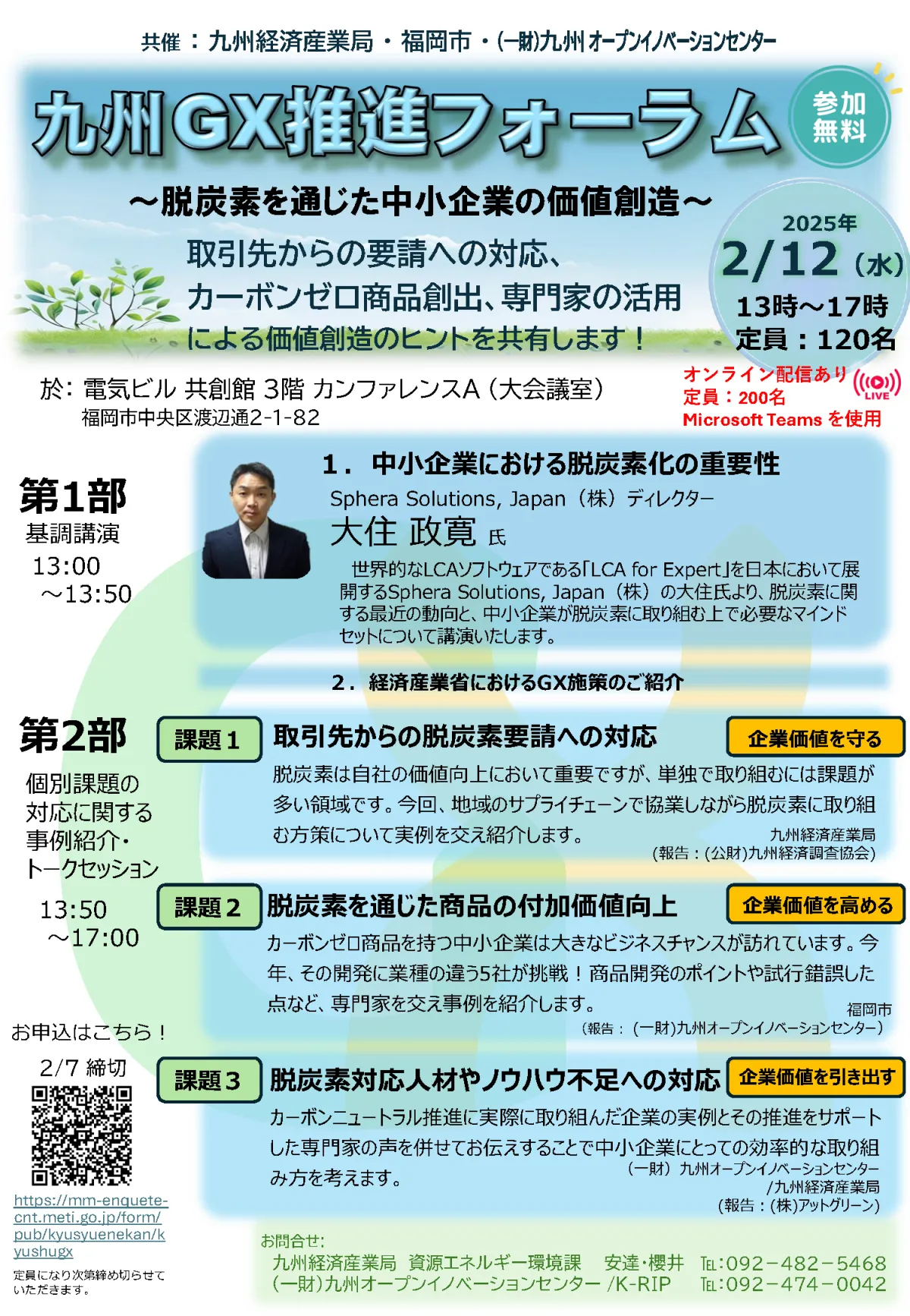 2025年2月12日、福岡市にて「九州GX推進フォーラム」が開催されます。このフォーラムは、中小企業が持続可能なビジネスモデルに向けて、脱炭素に向けた具体的な戦略を模索するための重要なイベントです。