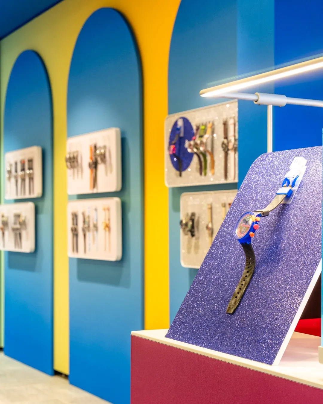 店内は明るく開放的なスペースが広がり、最新のSWATCH製品を揃えたコレクションが来店者を迎えます。クラシックなSWATCHスタイルから始まり、最新のSwatch NEONやBIOCERAMIC WHAT IF?、さらにはSwatch BREAK FREEやHolidayコレクションも並び、ファッション感度の高い人々にとって見逃せない場所となっています。また、サステナビリティにも配慮されたアイコニックなBioceramic MoonSwatchやBioceramic Scuba Fifty Fathomsコレクションも手に入れることができるため、SWATCHファンにとってはたまらないチャンスです。