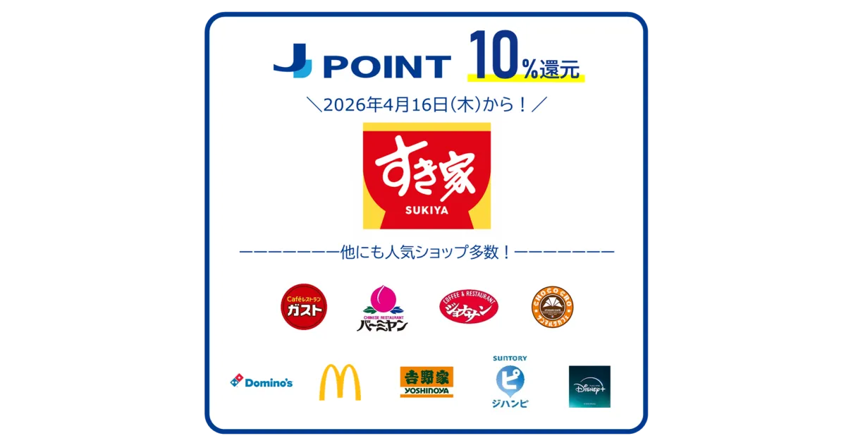 株式会社ジェーシービー(JCB)は、牛丼チェーン「すき家」を自身のポイント還元プログラム「J-POINTパートナー」に追加することを発表しました。この新しい提携により、利用者はすき家での食事を通じて10%のポイント還元が受けられるようになります。