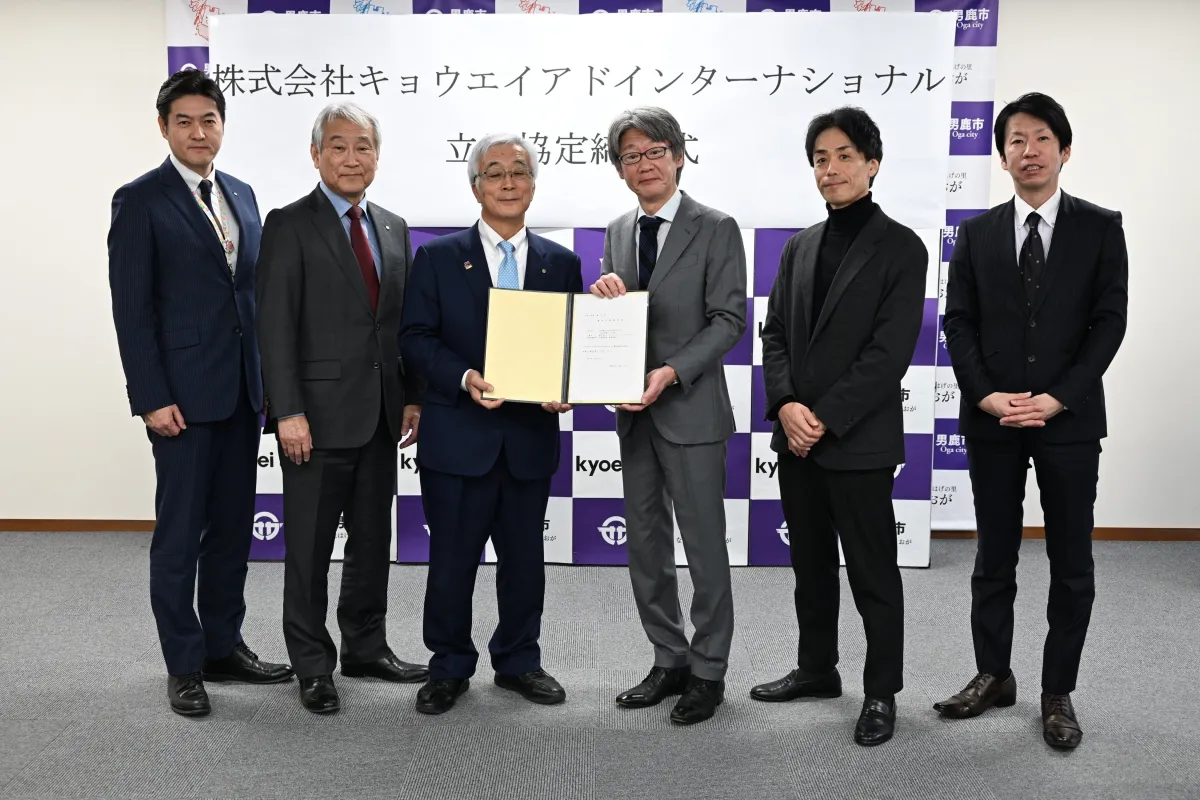 立地協定の締結式は昨年の12月19日に行われ、キョウエイアドからは取締役の片栁貴、小畑智之、仙台支社長の豊田英司が出席しました。式典では、男鹿市のビジョンやキョウエイアドへの期待が示され、両者の今後の関係性が紹介されました。男鹿市のSNSでもこの様子がシェアされ、多くの市民の関心が寄せられています。