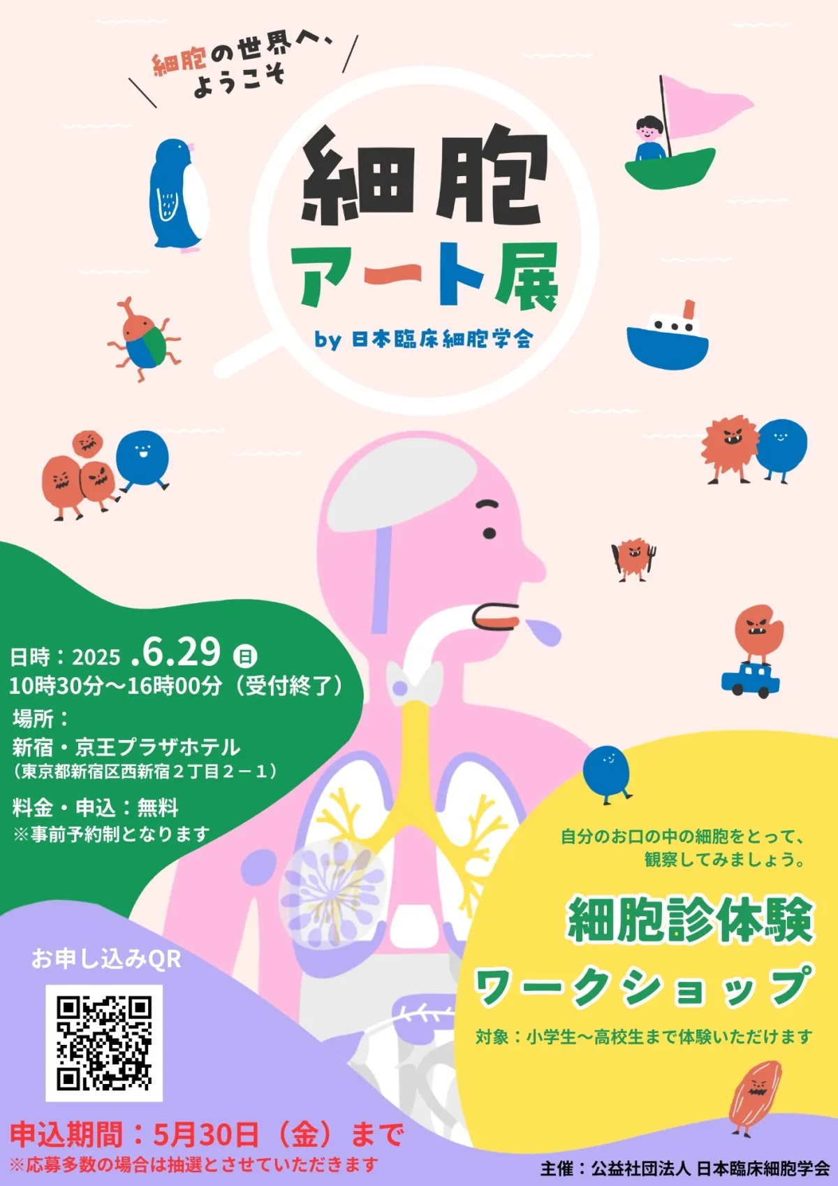 公益社団法人 日本臨床細胞学会が主催する「細胞アート展」が、再び東京・新宿で開催されることになりました。日程は2025年6月29日(日)で、京王プラザホテル42Fにて行われます。このイベントは、細胞や細胞診を楽しく学ぶ体験型のワークショップです。
