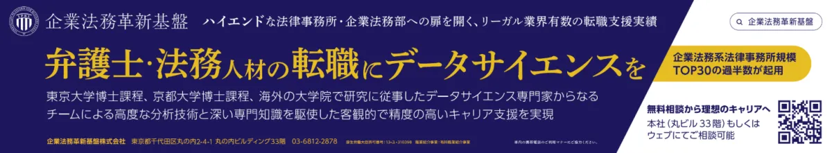 企業法務革新基盤は、東京大学や京都大学出身のデータサイエンス専門家によるキャリア支援を実施しています。高度な分析技術を駆使し、キャリア展開においてもリーガル業界において高い支援実績を持ちます。