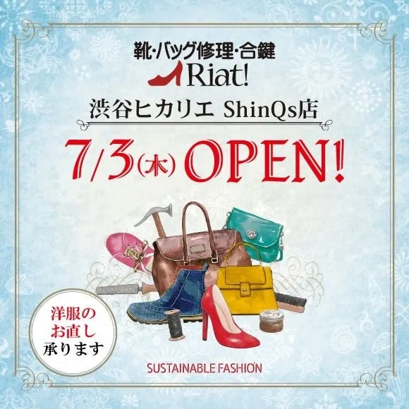 リアット!渋谷ヒカリエ ShinQs店は、新たなメンテナンス拠点として、渋谷の中心に新たに誕生しました。靴やバッグの修理や洋服のお直しなど、便利なサービスを利用できるこの機会をお見逃しなく、ぜひ足を運んでみてください。
