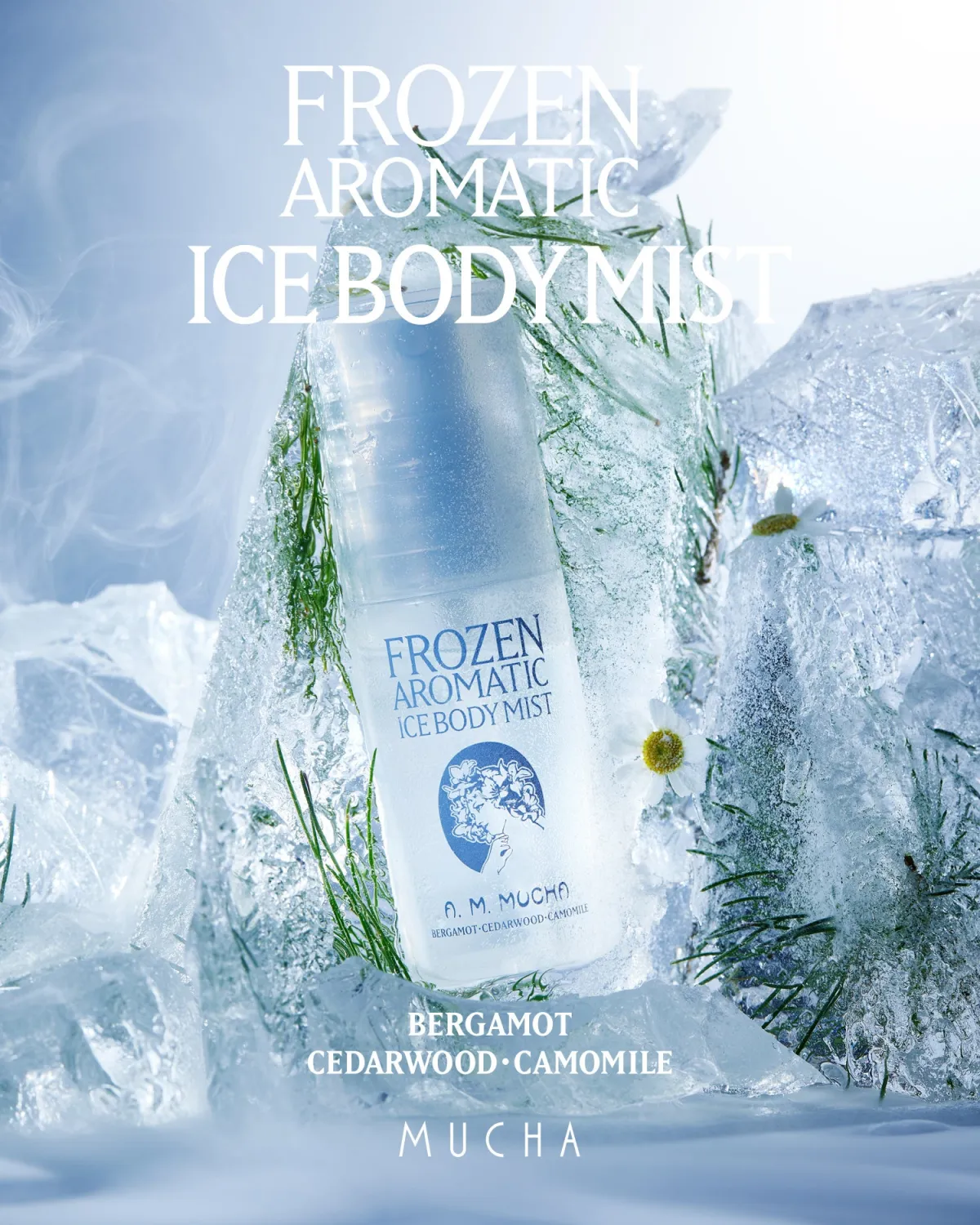 また、"アイスボディミスト フローズンアロマティック"の香りには、ベルガモット、シダーウッド、カモミールの3つのメイン成分が使用されています。爽やかな甘さとハーブの自然な清涼感が感じられ、特に夏にぴったりの香りに仕上げられています。