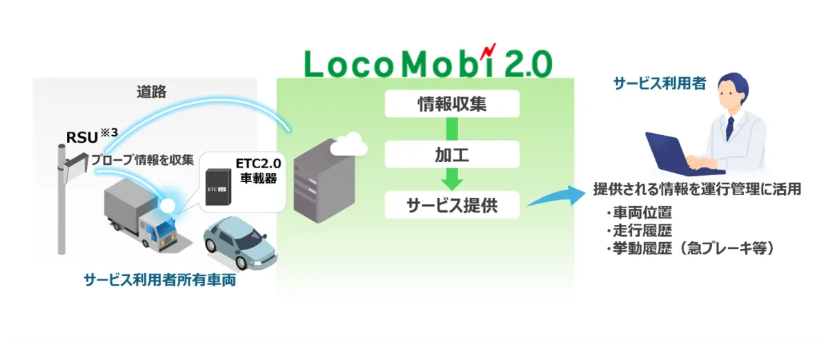 実証実験では、ETC2.0車載器から得られるプローブデータを活用し、OKIの車両運行管理支援クラウドサービス「LocoMobi2.0」を利用してデータの収集と可視化を行います。具体的には、走行履歴や急ブレーキ、急ハンドルといった挙動の履歴を分析し、事業者は各車両の位置情報や走行ルート、危険挙動の発生地点をWeb画面で簡単に管理できます。このサービスは、すでに搭載されている車載器を活用できるため、新たな機器の購入や設置・管理の手間が不要となります。これにより、コストや運用面での課題が解決され、中小規模の事業者も気軽にドライバー管理や安全運転支援に取り組むことができる機会が生まれます。