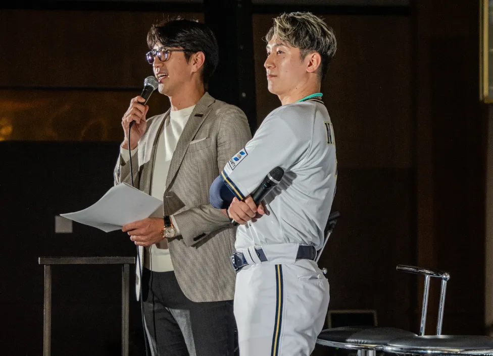 当日は、広島東洋カープの小園海斗選手やオリックス・バファローズの山岡泰輔選手、西川龍馬選手、さらにプロボディーボーダーの白波瀬海来選手やレーシングドライバーの名取鉄平選手など、多彩なアスリートたちが集まりました。プレゼンターとして司会を務めるのは、フリーアナウンサーの田中大貴氏。幅広い競技背景を持つ選手たちが集まり、それぞれの体へのアプローチや競技特性について語り合うクロストークセッションが展開されました。