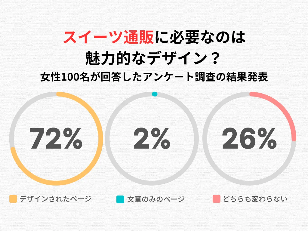 結果として、72%の回答者が「デザインされたページ」を選択し、2%が「文章のみのページ」と答え、残る26%は「どちらも変わらない」としました。この数字から、視覚的要素が商品の魅力にどれだけ寄与しているかが明確になります。