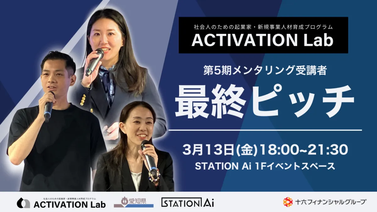 名古屋市昭和区に本社を構えるSTATION Ai株式会社が提供する社会人向けの起業家育成プログラム「ACTIVATION Lab」が、2026年3月13日(金)に最終ピッチ大会を開催します。このイベントでは、新たに12名の参加者がそれぞれの事業アイデアを発表し、観覧者がその成長の瞬間を見守ることができます。
