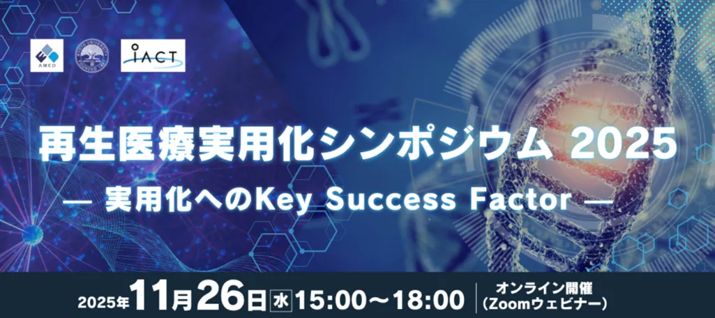 2025年11月26日(水)に、オンライン上で開催される「再生医療実用化シンポジウム2025」。このシンポジウムでは、再生医療や細胞医療、遺伝子治療の研究開発動向と、その商業化に向けた課題について議論が展開されます。主催は京都大学の研究チームで、国立研究開発法人日本医療研究開発機構(AMED)が共催することで、幅広い視点からのディスカッションが期待されています。