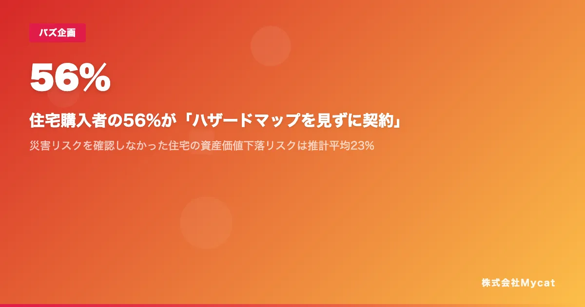 株式会社Mycatが提供するAI災害リスク診断サービス「サイガイマップ」によると、最近発表されたレポートによれば、住宅購入者の約56%がハザードマップを確認せずに契約を行っているという驚くべき実態が明らかになりました。このレポートは、内閣府の「防災に関する世論調査」と国土交通省の「不動産取引価格情報」を元にした分析から得られたものです。