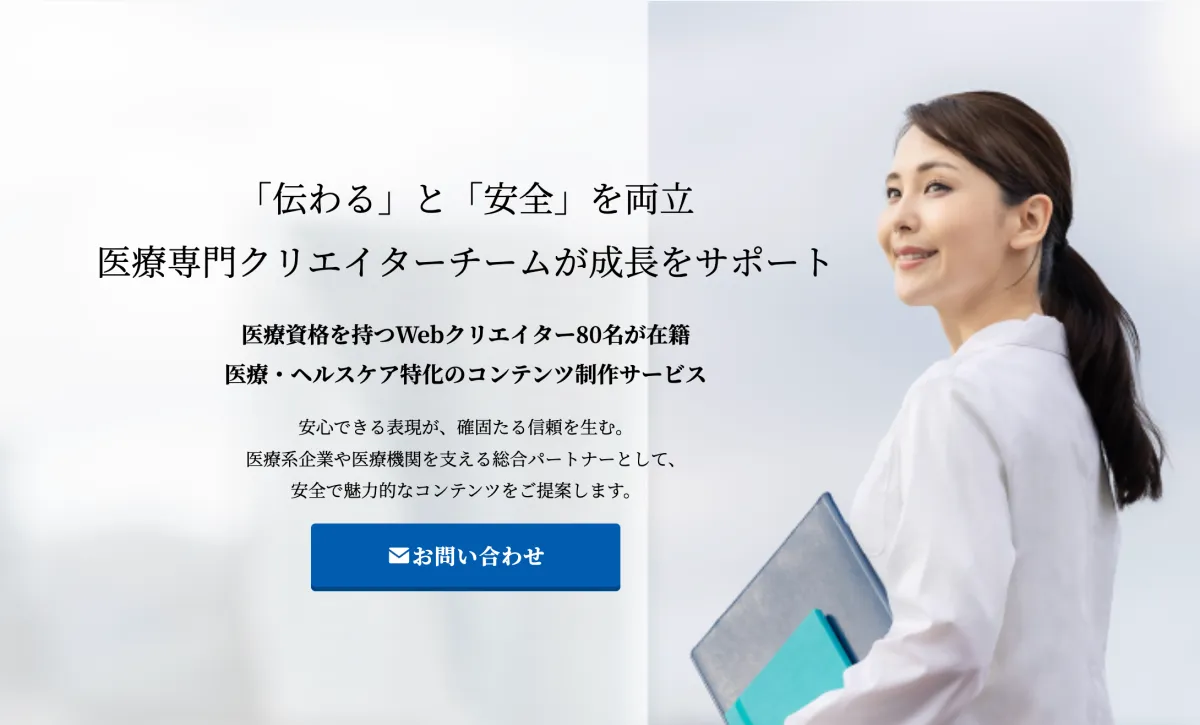 Medi+プロダクションは、ただのコンテンツ制作を超えて、医療系メディアの運営からHP構築、医療翻訳まで、さまざまなサービスを提供しています。医療に関する知識を豊富に有しているクリエイターたちは、エビデンスに基づいた内容を制作するため、医療機関やヘルスケア企業にとっても安心して依頼できる存在です。例えば、医療資格を持つライターによるインタビュー記事やSEO記事の作成が可能で、短期間で内容を仕上げる力も持っています。
