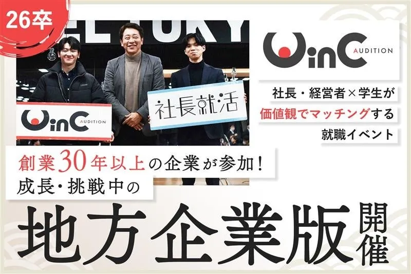 『WinC Audition』は、社長・経営者と学生の新しい出会いの場を提供するイベントです。特に、成長志向の地方企業に興味がある方や、自分の価値観が一致する企業を探している方には最適な機会です。イベントへの参加は、以下のリンクからエントリーできます。