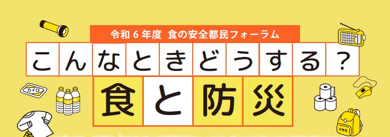 東京都では、食の安全にまつわる様々な情報を共有し、考える場として、毎年「食の安全都民フォーラム」を行っています。今年のテーマは「食と防災」です。このフォーラムでは、避難所での注意点や実際に避難所で発生した食に関する問題を話し合い、参加者自身の視点でどう行動するかを考える機会を提供します。