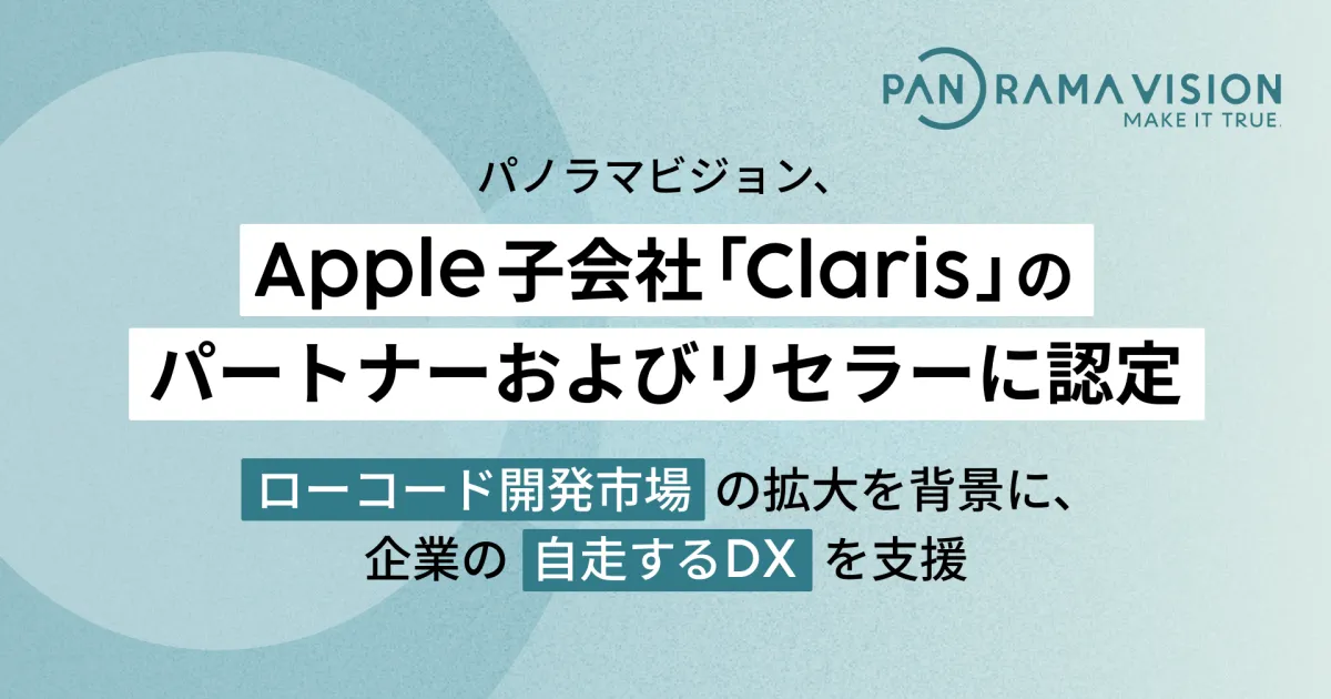 パノラマビジョン株式会社(本社:大分県大分市、代表取締役:伊東岳)は、Appleの子会社であるClaris International Inc.が提供するパートナープログラムにおいて、正式にClaris PartnerおよびClaris Partner Resellerとして認定されることとなりました。これにより、同社はClaris FileMaker®を用いてカスタムアプリの開発や内製化の支援を行うほか、正規ライセンスの販売まで手掛ける体制が整いました。