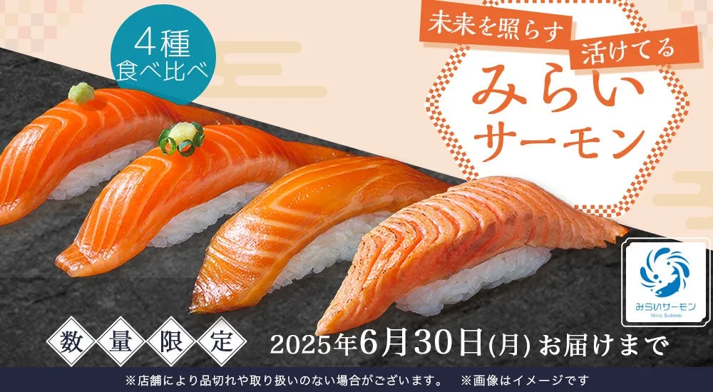 2025年3月17日から、「銀のさら」では環境に優しい次世代サーモン『みらいサーモン4種食べ比べ』を数量限定で販売します。今回の商品は、みらいサーモン、みらいサーモン(しょうがねぎ)、漬けみらいサーモン、炙りみらいサーモンの4種類。魚の旨みが凝縮されたこのサーモンは、グルメな方々にも納得の一品です。