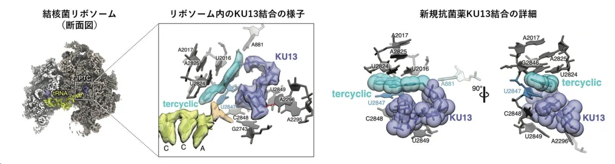 さらに、KU13の作用機序を探る実験も行われ、リボソームの構造変化を誘導し、新たな相互作用を形成するユニークなメカニズムが明らかになりました。この新しい作用機序は、将来的に薬剤耐性を有するNTMに有効な治療薬の開発に貢献する可能性があります。