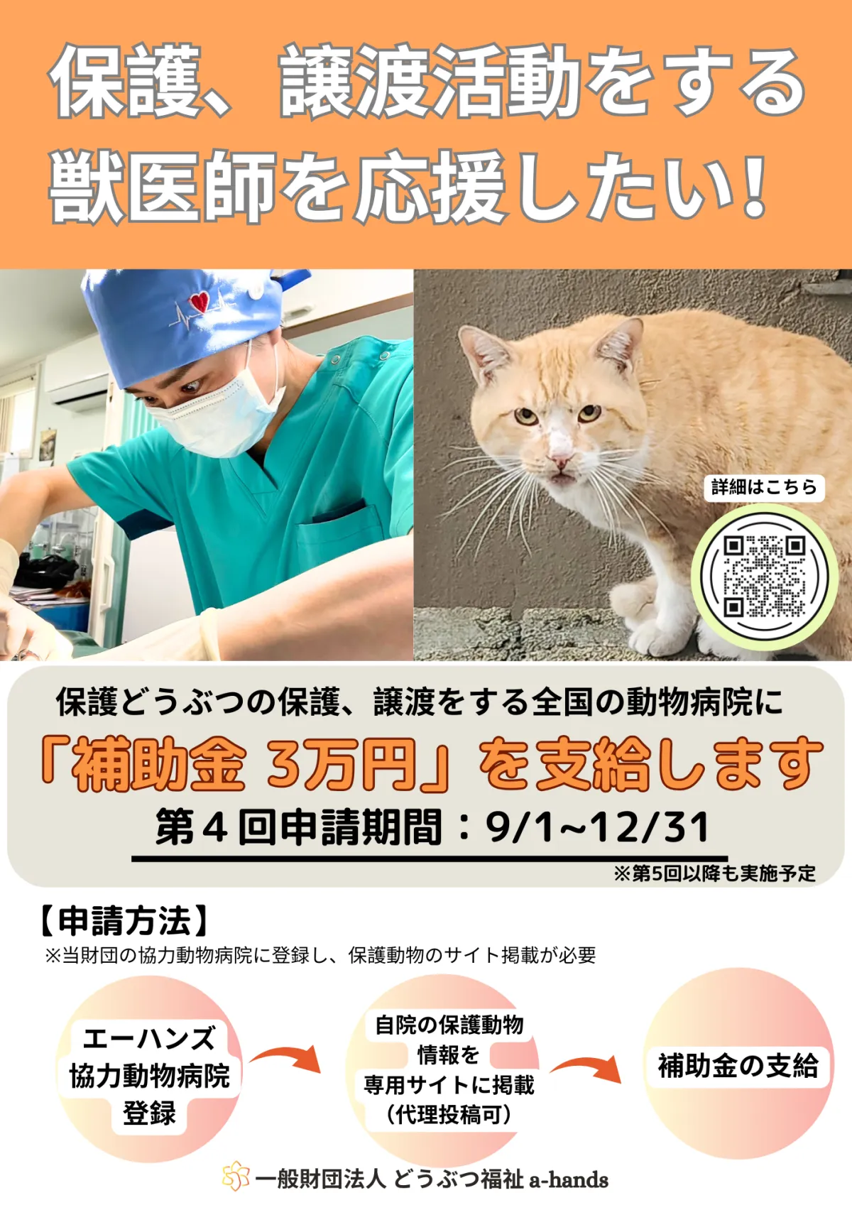 一般財団法人どうぶつ福祉a-hands(東京都中野区)は、保護された猫や犬の福祉を向上させるための新しい制度を開始しました。この制度、名付けて「医療チケット制度」とは、獣医師の専門知識を活かして保護動物のための医療費を助成する取り組みです。保護動物の譲渡をよりスムーズかつ安心して行えるよう、具体的な支援を行います。
