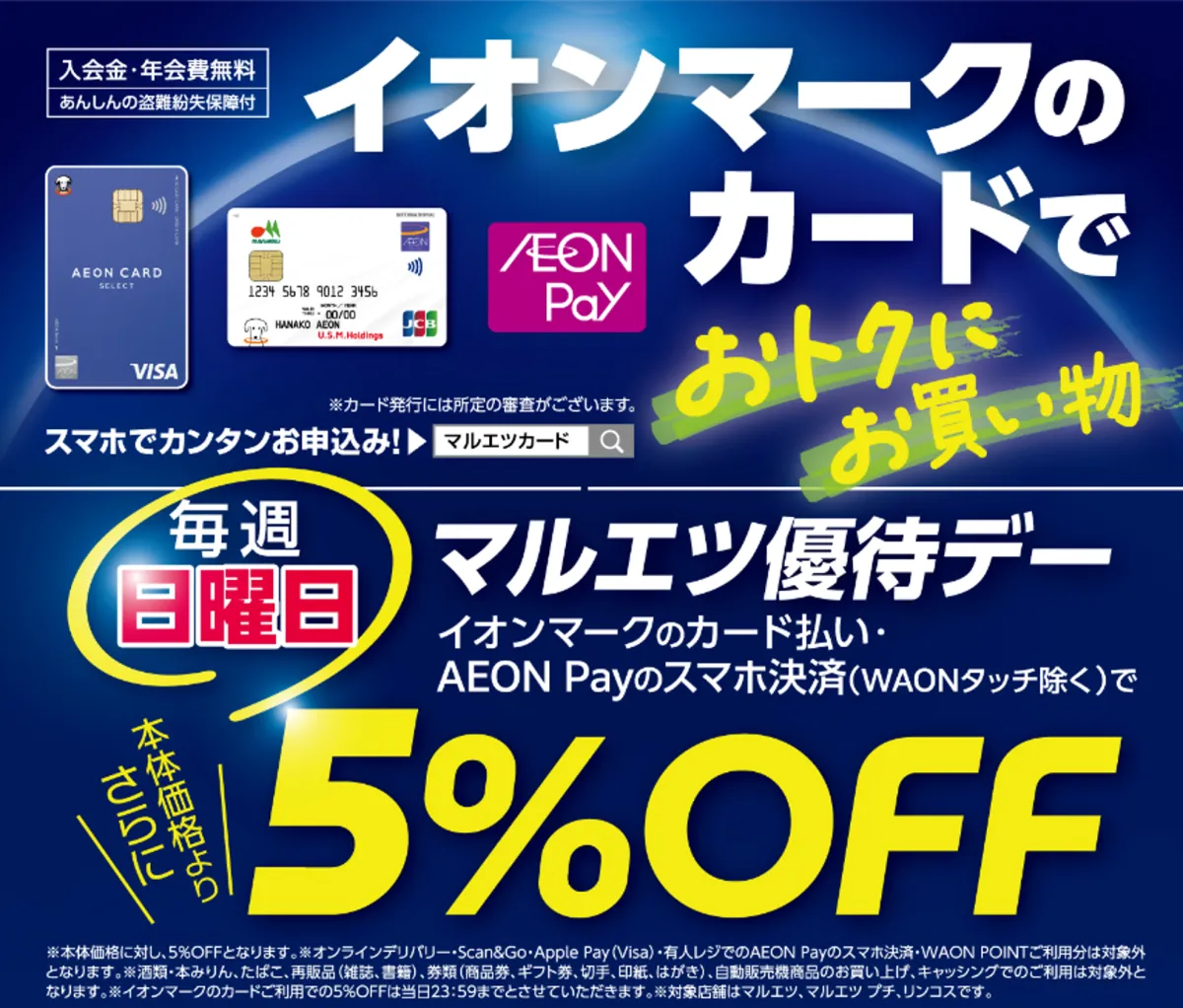 株式会社マルエツ(本社:東京都豊島区)は、2023年9月28日より、毎週日曜日に実施される「マルエツ優待デー」での割引対象を拡大することを発表しました。これまでマルエツカードのみが対象でしたが、イオンマークのカード払いとAEON Payによるスマホ決済(WAONタッチを除く)も新たに利用できるようになります。これにより、マルエツ、マルエツ プチ、リンコス全店舗(魚悦糀谷店を除く)で、より多くのお客さまが5%OFFの特典を享受できるようになります。