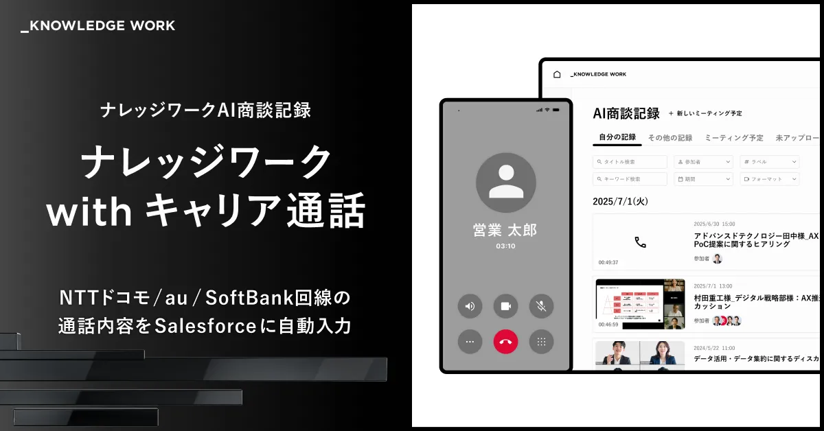 株式会社ナレッジワークは、営業活動に新たな光をもたらす革新的なサービス『ナレッジワーク with キャリア通話』を発表しました。この新機能は、NTTドコモ、au、SoftBankの各携帯回線を利用した通話内容を自動で録音し、解析した情報をSalesforceに直接入力することができます。