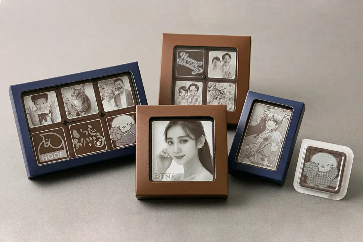 これまでの食用インクを使用したフードプリントとは異なり、この製品はホワイトチョコレートだけでデザインを再現します。そのため、味わいを損なうことなく、驚くほど高精細な表現が実現されています。写真やロゴの濃淡を巧みに再現できるため、特別な瞬間を感じられる商品に仕上がっています。