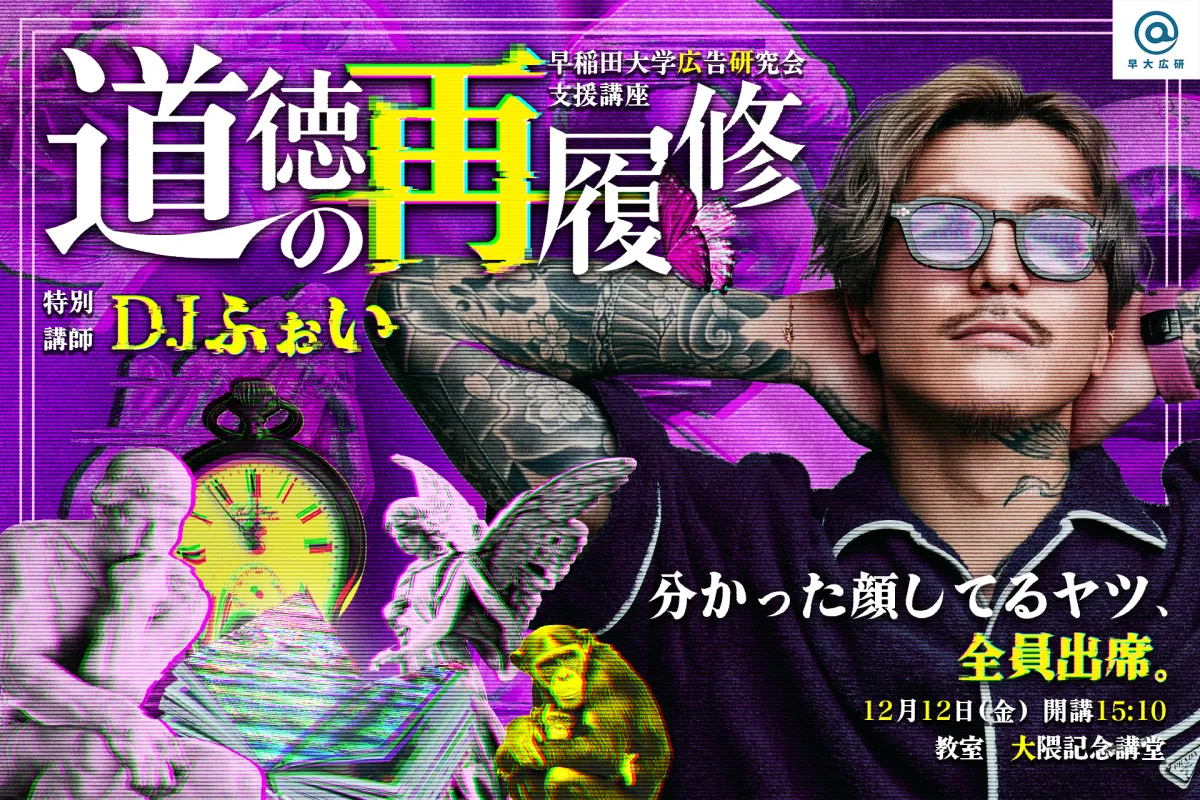 2025年12月12日、早稲田大学の大隈記念講堂で「道徳の再履修」というテーマの特別トークイベントが開催されます。このイベントは、DJふぉいを講師に迎え、学生とともに現代の道徳について考察する場となります。彼は福岡県出身で、「レペゼン地球」や「Repezen Foxx」として知られるアーティストであり、音楽や配信、アパレル、eスポーツなど多岐にわたる活動を行っています。また、2023年にはフォトエッセイ『#チラ裏』を出版し、2025年からはソロアーティスト「DJ? Foy」としても活動を始める予定です。