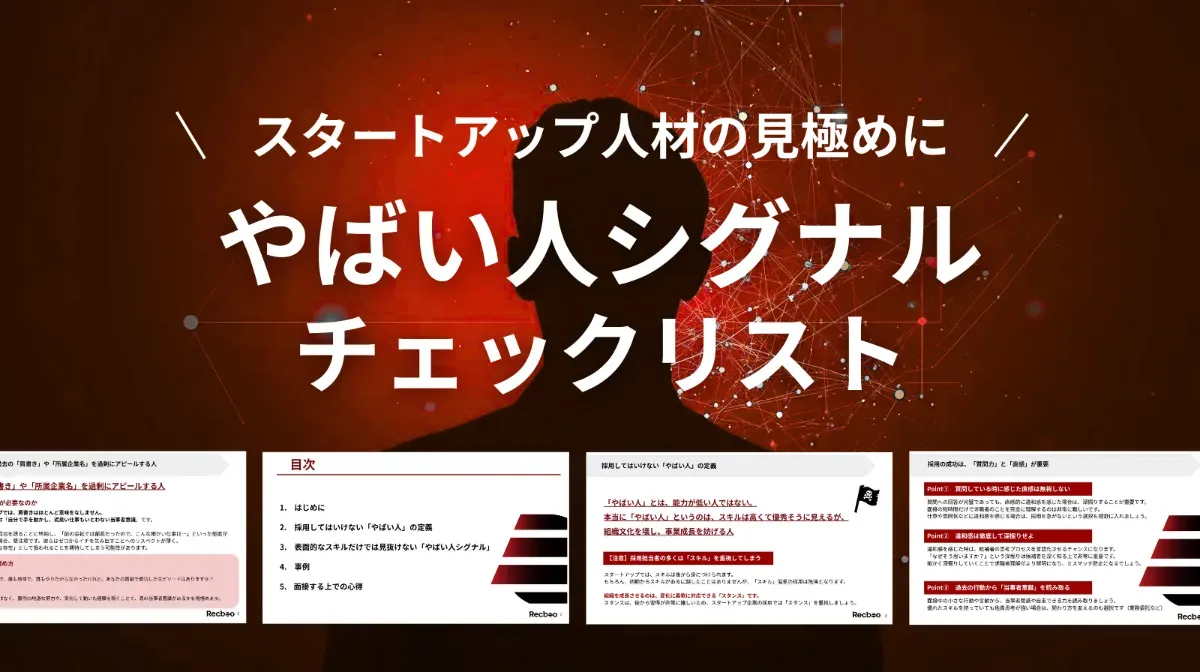 実際、スタートアップにおいて最も注意が必要なのは、スキルが高そうに見えても、結果的にチームに悪影響を及ぼす人材です。このような「やばい人」は、面接や経歴書だけでは判断しにくく、実際に働き始めてから問題が浮き彫りになることが多いです。そうした事例を事前に防ぐために、施設されたのが「やばい人シグナル チェックリスト」です。