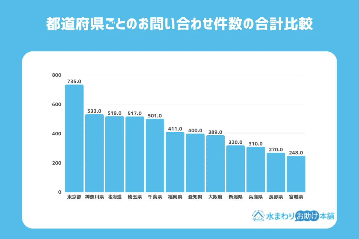 特に関東甲信地域では東京や神奈川が中心となり、多くの相談が寄せられていますが、一方で人口10万人あたりの問い合わせ件数を見てみると、秋田県、新潟県、長野県が上位にランクインしました。これにより、寒冷地域における凍結や破裂といった特有のトラブルも見逃せない事実です。